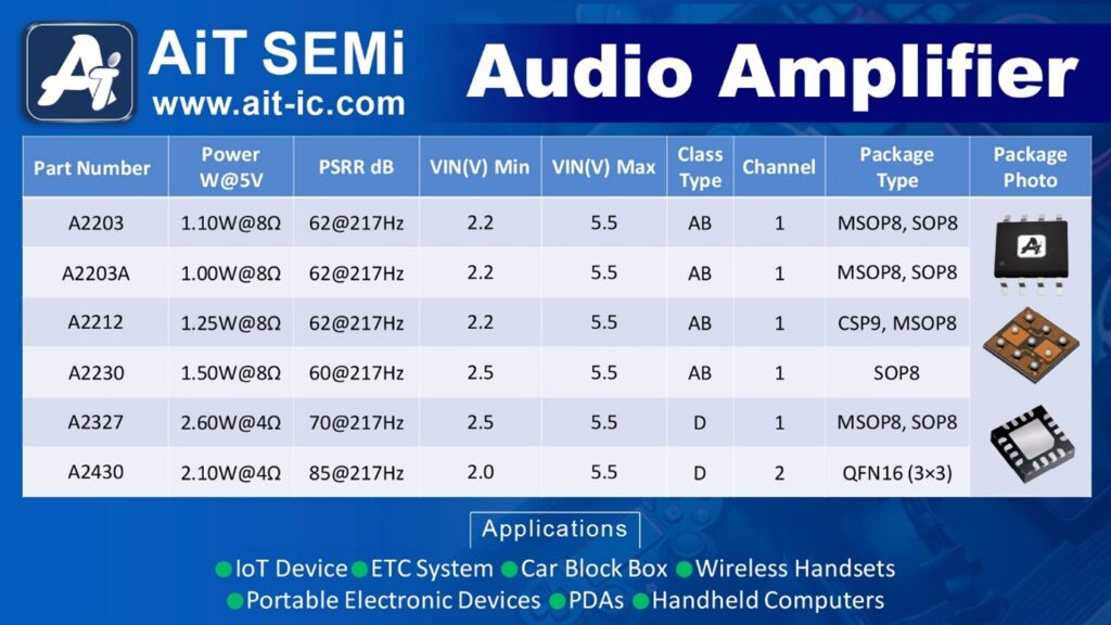 We offer High-performance Audio Amplifier with a 2.0V–5.5V input range, providing clear, distortion-free sound and optimized for energy-efficient systems.